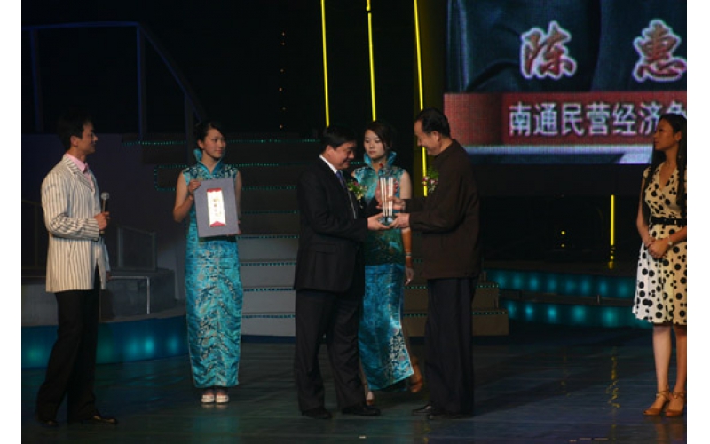 2007年3月30日,南通更俗劇院。南通民營(yíng)經(jīng)濟(jì)爭(zhēng)創(chuàng)“名企、名品、名人”2006年度人物頒獎(jiǎng)晚會(huì)隆重舉行。會(huì)上,通過(guò)初評(píng)、公眾投票、專家組評(píng)定等程序評(píng)選出的12位民營(yíng)企業(yè)家受到表彰,陳惠董事長(zhǎng)榮列其中。南通市政協(xié)主席曹能新為陳惠董事長(zhǎng)頒發(fā)榮譽(yù)證書(shū)和獎(jiǎng)杯。