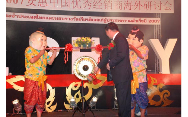 2007年5月29日,是安惠公司歷史上一個(gè)永遠(yuǎn)值得紀(jì)念的日子。這一天,安惠第一家海外公司——安惠(泰國(guó))有限公司在曼谷emerald大酒店隆重舉行成立慶典。安惠發(fā)展史由此掀開(kāi)了新的一頁(yè)。它意味著安惠打造國(guó)際公司、拓展海外市場(chǎng)邁開(kāi)了堅(jiān)實(shí)的步伐。