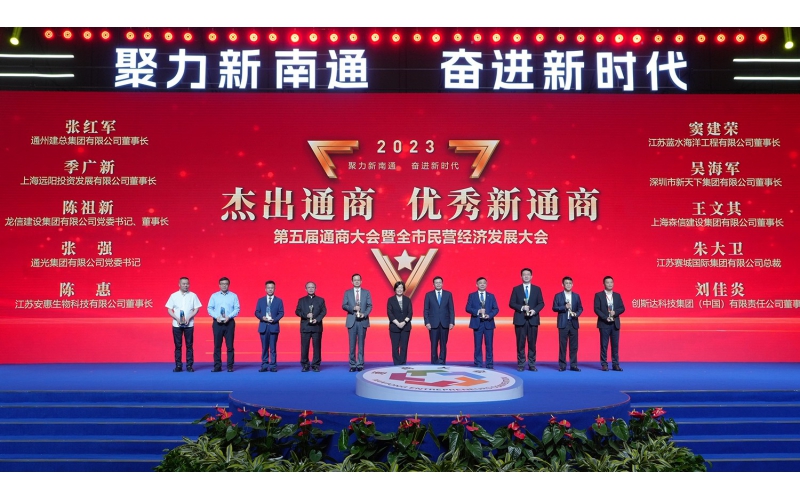 2023年5月21日,第五屆通商大會暨南通民營經(jīng)濟(jì)發(fā)展大會在南通國際會議中心舉行。包括兩院院士、高校院所負(fù)責(zé)人、央企國企負(fù)責(zé)人、海內(nèi)外通商代表等在內(nèi)的600余名鄉(xiāng)賢、嘉賓相聚南通,共敘鄉(xiāng)情、共謀發(fā)展、共話未來。會上,安惠公司黨委書記、董事長陳惠再獲杰出通商殊榮。