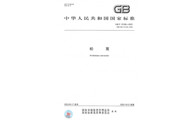 2023年3月,由江蘇安惠生物科技有限公司參與修訂的國標(biāo)GB/T 23188-2023《松茸》于中華人民共和國國家標(biāo)準(zhǔn)公告(2023年第1號)發(fā)布,將于2023年10月1日起正式實(shí)施。