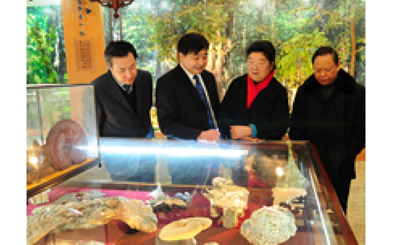 2011年1月25日,十屆全國人大常委會副委員長顧秀蓮(右二)在南通市人大常委會副主任宋飛(右一),南通市委常委、市委秘書長黃巍東(左一)的陪同下參觀中華靈芝文化館。