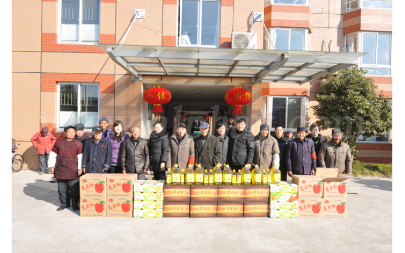2014年1月23日上午,安惠公司黨委副書記金敏林、工會主席李士強、團委書記竺婷一行來到南通開發(fā)區(qū)敬老院,看望和慰問在這里生活居住的老人,為他們送去靈芝酒、食用油、水果等節(jié)日慰問物資,表達全體安惠人對他們的關懷。